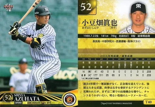 BBM/tarjeta regular / BBM2017 Hanshin Tigers T40 [tarjeta regular] : Shin'ya Azuhata