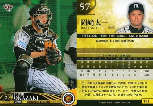 Nombre comercial en japonés: BBM/レギュラーカード/BBM2017 阪神タイガース T41[レギュラーカード]:岡﨑太一