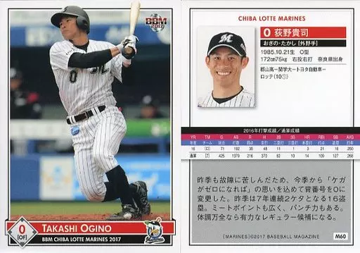 BBM / tarjeta regular / BBM2017 Chiba Lotte Marines M60 [tarjeta regular] : Takashi Ogino