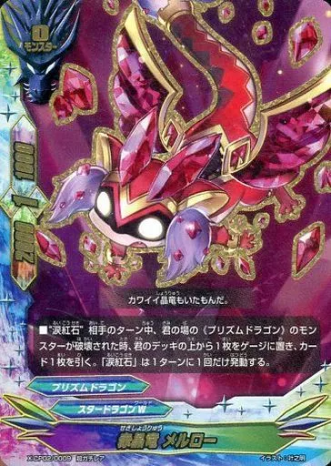 Nombre comercial en japonés: バディファイト/超ガチレア/モンスター/スタードラゴンW/[BF-X-CP02]バッツ キャラクターパック第2弾「むっちゃ!! 100円スタードラゴン」 X-CP02/0009[超ガチレア]:赤晶竜 メルロー