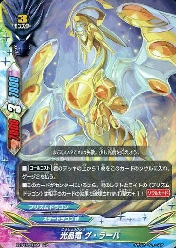 Nombre comercial en japonés: バディファイト/レア/モンスター/スタードラゴンW/[BF-X-CP02]バッツ キャラクターパック第2弾「むっちゃ!! 100円スタードラゴン」 X-CP02/0024[レア]:光晶竜 グ・ラーパ(ガチレア仕様)