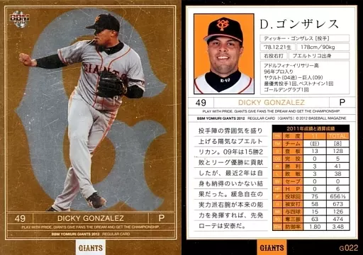 BBM / tarjeta regular / BBM2012 Yomiuri Giants G022 [tarjeta regular] : González (versión paralela)