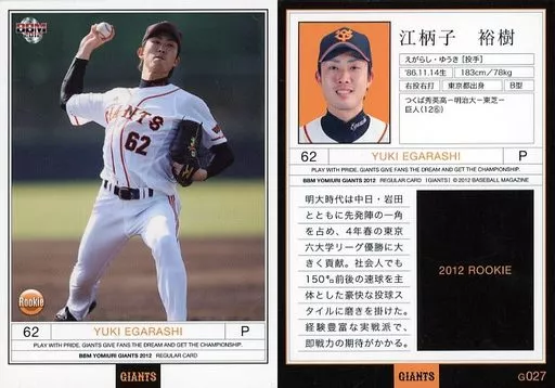 Nombre comercial en japonés: BBM/レギュラーカード/BBM2012 読売ジャイアンツ G027[レギュラーカード]:江柄子裕樹