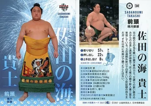 Nombre comercial en japonés: BBM/レギュラーカード/BBM2017 大相撲カード 魂 34[レギュラーカード]:佐田の海 貴士