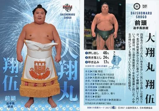 Nombre comercial en japonés: BBM/レギュラーカード/BBM2017 大相撲カード 魂 37[レギュラーカード]:大翔丸 翔伍