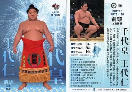 Nombre comercial en japonés: BBM/レギュラーカード/BBM2017 大相撲カード 魂 40[レギュラーカード]:千代皇 王代仁