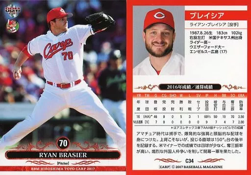 Nombre comercial en japonés: BBM/レギュラーカード/BBM2017 広島東洋カープ C34[レギュラーカード]:ブレイシア