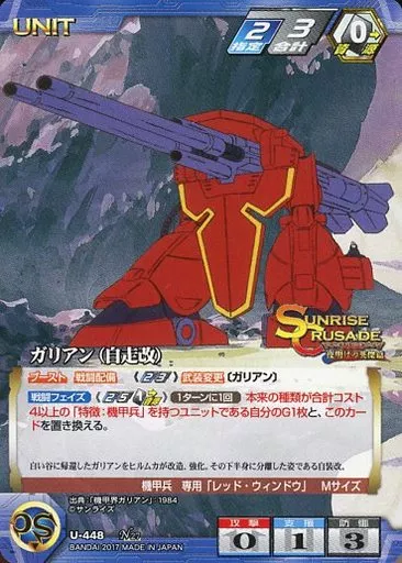 Nombre comercial en japonés: クルセイド/N/UNIT/青/サンライズクルセイド 夜明けの英傑編~異界の神話~ U-448[N]:ガリアン(自走改)
