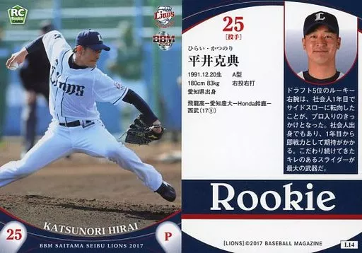 Nombre comercial en japonés: BBM/レギュラーカード/BBM2017 埼玉西武ライオンズ L14[レギュラーカード]:平井克典