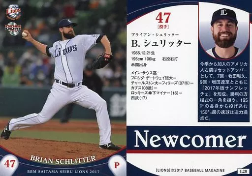 Nombre comercial en japonés: BBM/レギュラーカード/BBM2017 埼玉西武ライオンズ L28[レギュラーカード]:B.シュリッター