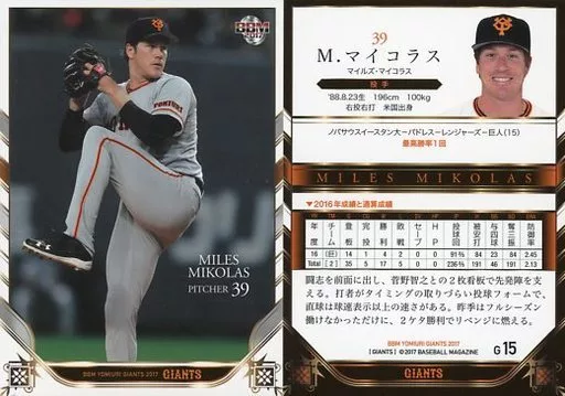 Nombre comercial en japonés: BBM/レギュラーカード/BBM2017 読売ジャイアンツ G15[レギュラーカード]:M.マイコラス