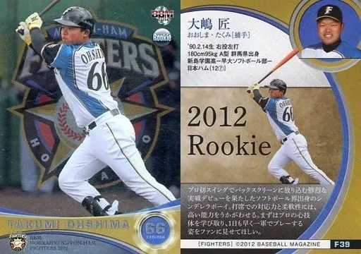 Nombre comercial en japonés: BBM/レギュラーカード/BBM2012 北海道日本ハムファイターズ F39[レギュラーカード]:大嶋匠(パラレル版)