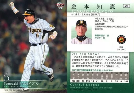 Nombre comercial en japonés: BBM/レギュラーカード/阪神タイガース/BBM2009 ベースボールカード 2ndバージョン 673[レギュラーカード]:金本知憲
