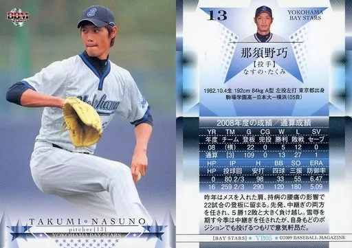 Nombre comercial en japonés: BBM/レギュラーカード/BBM2009 横浜ベイスターズ YB05[レギュラーカード]:那須野巧