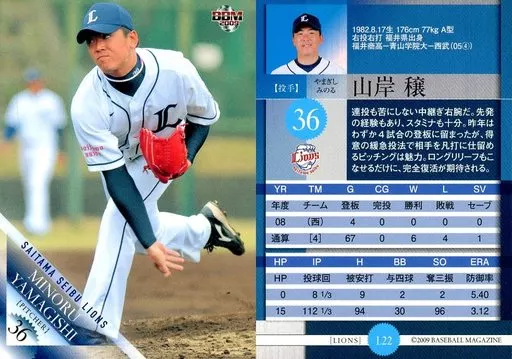 Nombre comercial en japonés: BBM/レギュラーカード/埼玉西武ライオンズ/BBM2009 西武ライオンズ L22[レギュラーカード]:山岸穣