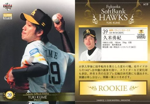 Nombre comercial en japonés: BBM/レギュラーカード/BBM2008 福岡ソフトバンクホークス H19[レギュラーカード]:久米勇紀