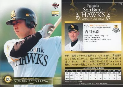 Nombre comercial en japonés: BBM/レギュラーカード/BBM2008 福岡ソフトバンクホークス H71[レギュラーカード]:吉川元浩