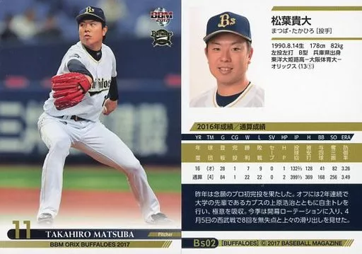 Nombre comercial en japonés: BBM/レギュラーカード/BBM2017 オリックス・バファローズ Bs02[レギュラーカード]:松葉貴大