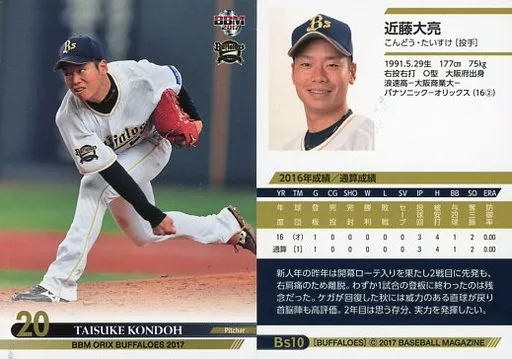 Nombre comercial en japonés: BBM/レギュラーカード/BBM2017 オリックス・バファローズ Bs10[レギュラーカード]:近藤大亮