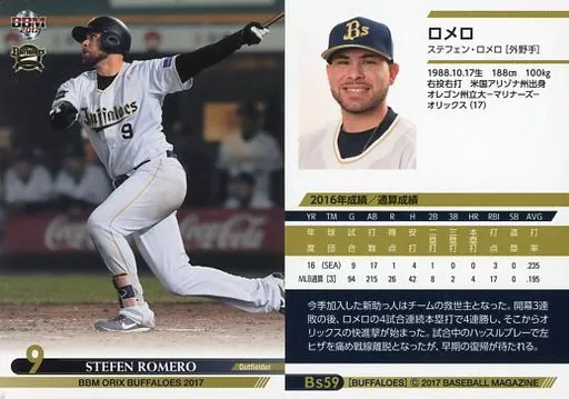 Nombre comercial en japonés: BBM/レギュラーカード/BBM2017 オリックス・バファローズ Bs59[レギュラーカード]:ロメロ
