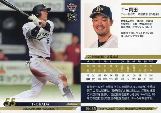 Nombre comercial en japonés: BBM/レギュラーカード/BBM2017 オリックス・バファローズ Bs65[レギュラーカード]:T-岡田