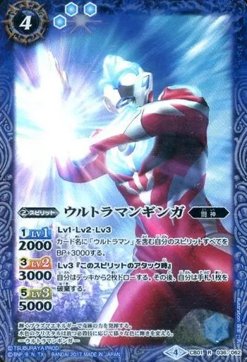 Nombre comercial en japonés: バトルスピリッツ/R/スピリット/コラボブースター ウルトラヒーロー大集結 CB01-036[R]:ウルトラマンギンガ