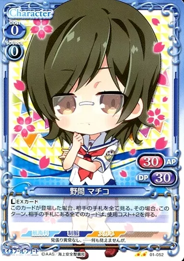 Nombre comercial en japonés: プレシャスメモリーズ/UC/キャラクター/青/ハイスクール・フリート ブースターパック 01-052[UC]:野間 マチコ