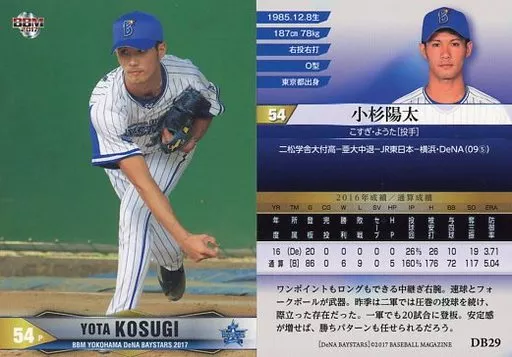 Nombre comercial en japonés: BBM/レギュラーカード/BBM2017 横浜DeNAベイスターズ DB29[レギュラーカード]:小杉陽太