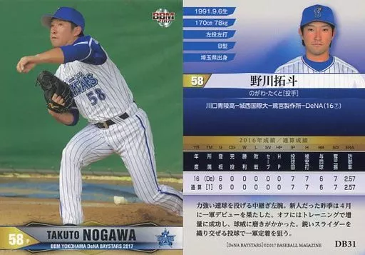 Nombre comercial en japonés: BBM/レギュラーカード/BBM2017 横浜DeNAベイスターズ DB31[レギュラーカード]:野川拓斗