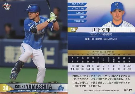 Nombre comercial en japonés: BBM/レギュラーカード/BBM2017 横浜DeNAベイスターズ DB49[レギュラーカード]:山下幸輝