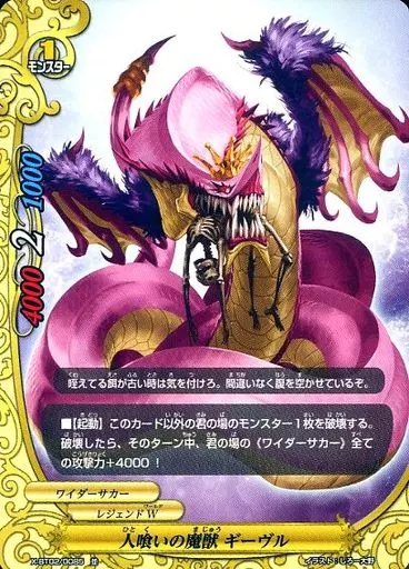 Nombre comercial en japonés: バディファイト/並/モンスター/レジェンドW/[BF-X-BT02]バッツ ブースターパック第2弾「カオス・コントロール・クライシス」 X-BT02/0085[並]:人喰いの魔獣 ギーヴル