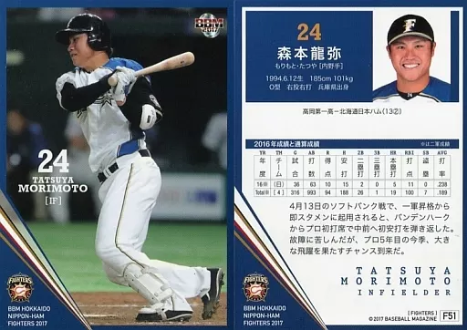 BBM / tarjeta regular / BBM2017 Hokkaido Nippon-Ham Fighters F51 [tarjeta regular] : Tatsuya Morimoto