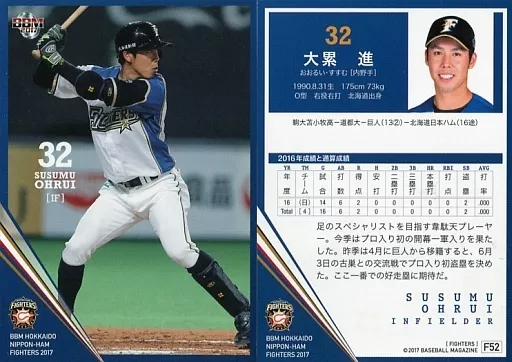 Nombre comercial en japonés: BBM/レギュラーカード/BBM2017 北海道日本ハムファイターズ F52[レギュラーカード]:大累進