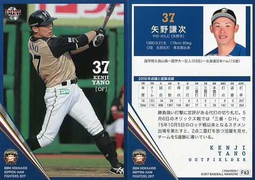 BBM / tarjeta regular / BBM2017 Hokkaido Nippon-Ham Fighters F63 [tarjeta regular] : Kenji Yano