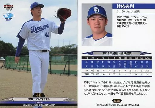 BBM / tarjeta regular / BBM2017 Chunichi Dragons D38 [tarjeta regular] : Yoritoshi Katsura