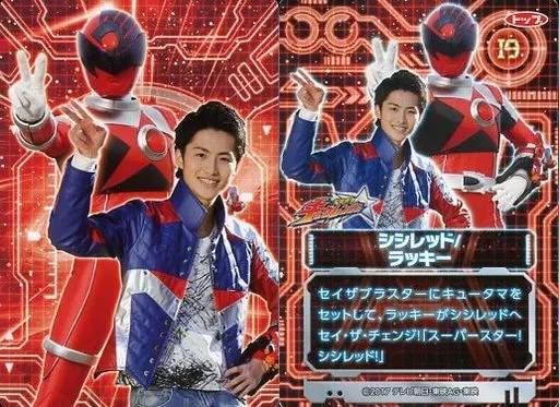 Nombre comercial en japonés: アニメ系トレカ/宇宙戦隊キュウレンジャーカードガム 19[-]:シシレッド/ラッキー