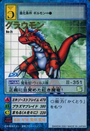 Nombre comercial en japonés: 旧デジモンカードゲーム/デジモンカード/デジタルモンスターカードゲーム 拡張ボード1 Bo-2t:グラウモン(金箔押し)
