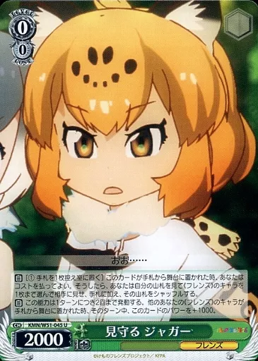 Nombre comercial en japonés: ヴァイスシュヴァルツ/U/キャラ/ブースターパック けものフレンズ KMN/W51-045[U]:見守る ジャガー