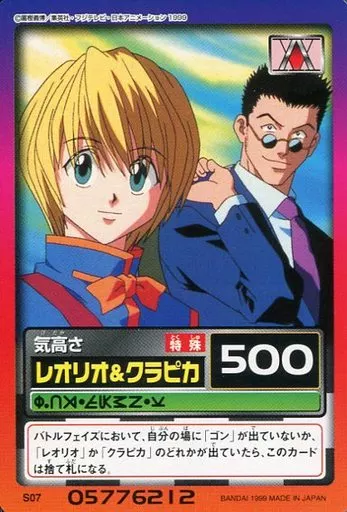 Nombre comercial en japonés: アニメ系トレカ/レギュラーカード/カードダス ハイパーバトル HUNTER×HUNTER パート1~ハンター試験編~ S07[レギュラーカード]:レオリオ&クラピカ