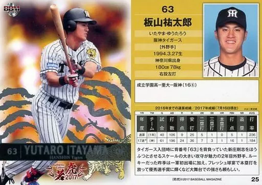 Nombre comercial en japonés: BBM/レギュラーカード/BBM2017 阪神タイガース Authentic Edition 若虎 25[レギュラーカード]:板山祐太郎