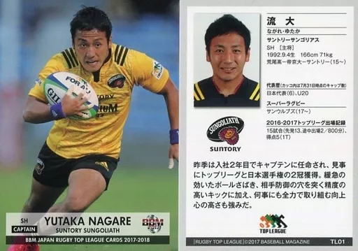 Nombre comercial en japonés: BBM/レギュラーカード/キャプテン/サントリーサンゴリアス/BBM2017 ジャパン ラグビー トップリーグカード 2017-2018 TL01[レギュラーカード]:流大