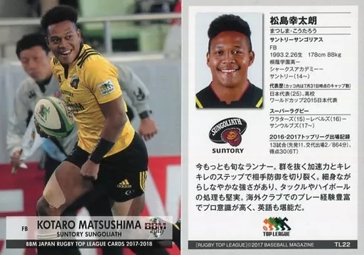 BBM / Regular Card / Suntory Coralius / BBM2017 Japan Rugby Top League Card 2017-2018 TL22 [tarjeta regular] : Kōtarō Matsushima