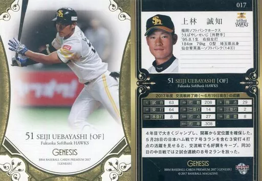 Nombre comercial en japonés: BBM/レギュラーカード/福岡ソフトバンクホークス/BBM2017 ジェネシス 017[レギュラーカード]:上林誠知