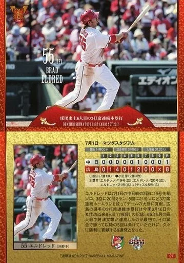 Nombre comercial en japonés: BBM/レギュラーカード/BBM2017 広島東洋カープ セ・リーグ優勝記念カードセット 27[レギュラーカード]:エルドレッド