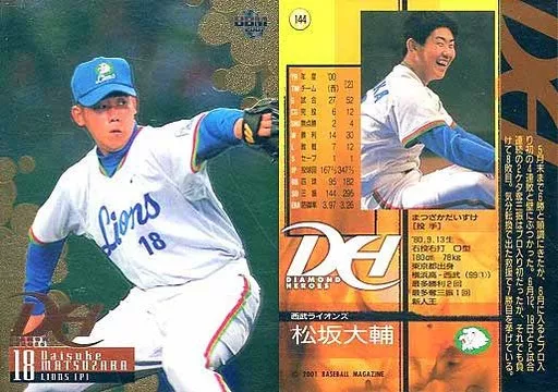 Nombre comercial en japonés: BBM/レギュラーカード/西武ライオンズ/BBM2001ダイヤモンドヒーローズ 144[レギュラーカード]:松坂大輔
