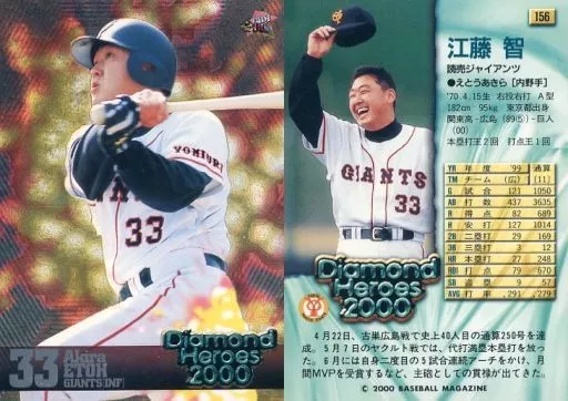 Nombre comercial en japonés: BBM/レギュラーカード/読売ジャイアンツ/BBM2000 Diamond Heroes(ダイヤモンドヒーローズ) 156[レギュラーカード]:江藤智