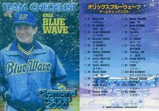 Nombre comercial en japonés: BBM/レギュラーカード/チェックリスト/BBM2000 Diamond Heroes(ダイヤモンドヒーローズ) 243[レギュラーカード]:オリックス・ブルーウェーブ