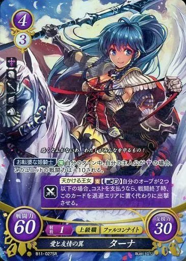 Nombre comercial en japonés: TCGファイアーエムブレム0/SR/神器/[B11]ブースターパック「赫赫たる双撃」 B11-027SR[SR]:愛と友情の翼 ターナ