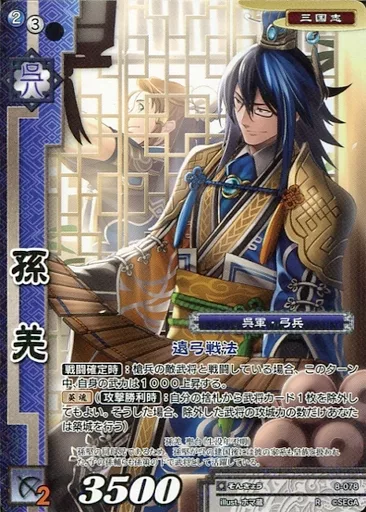 Nombre comercial en japonés: 戦国大戦TCG/R/武将/蒼/第八弾ブースターパック 8-078[R]:孫羌
