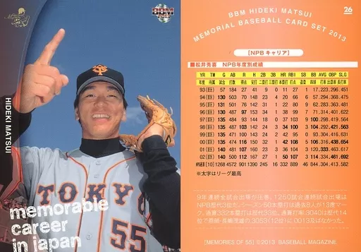 Nombre comercial en japonés: BBM/レギュラーカード/読売ジャイアンツ/BBM2013 松井秀喜メモリアル カードセット 26[レギュラーカード]:NPBキャリア